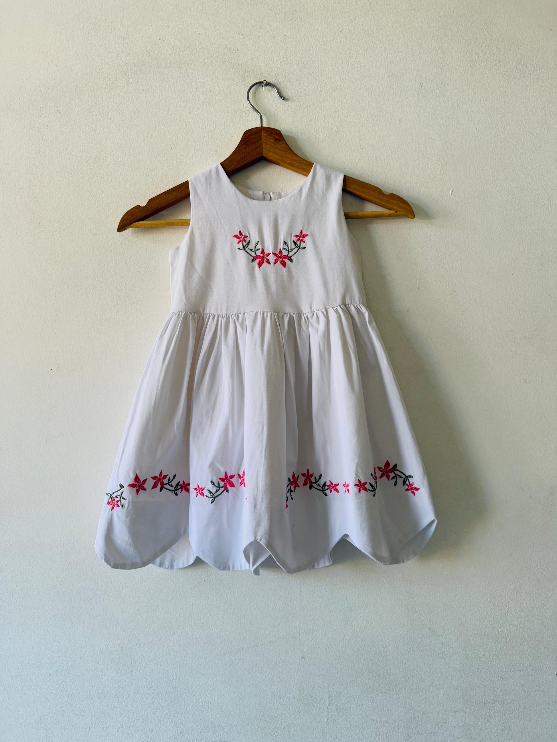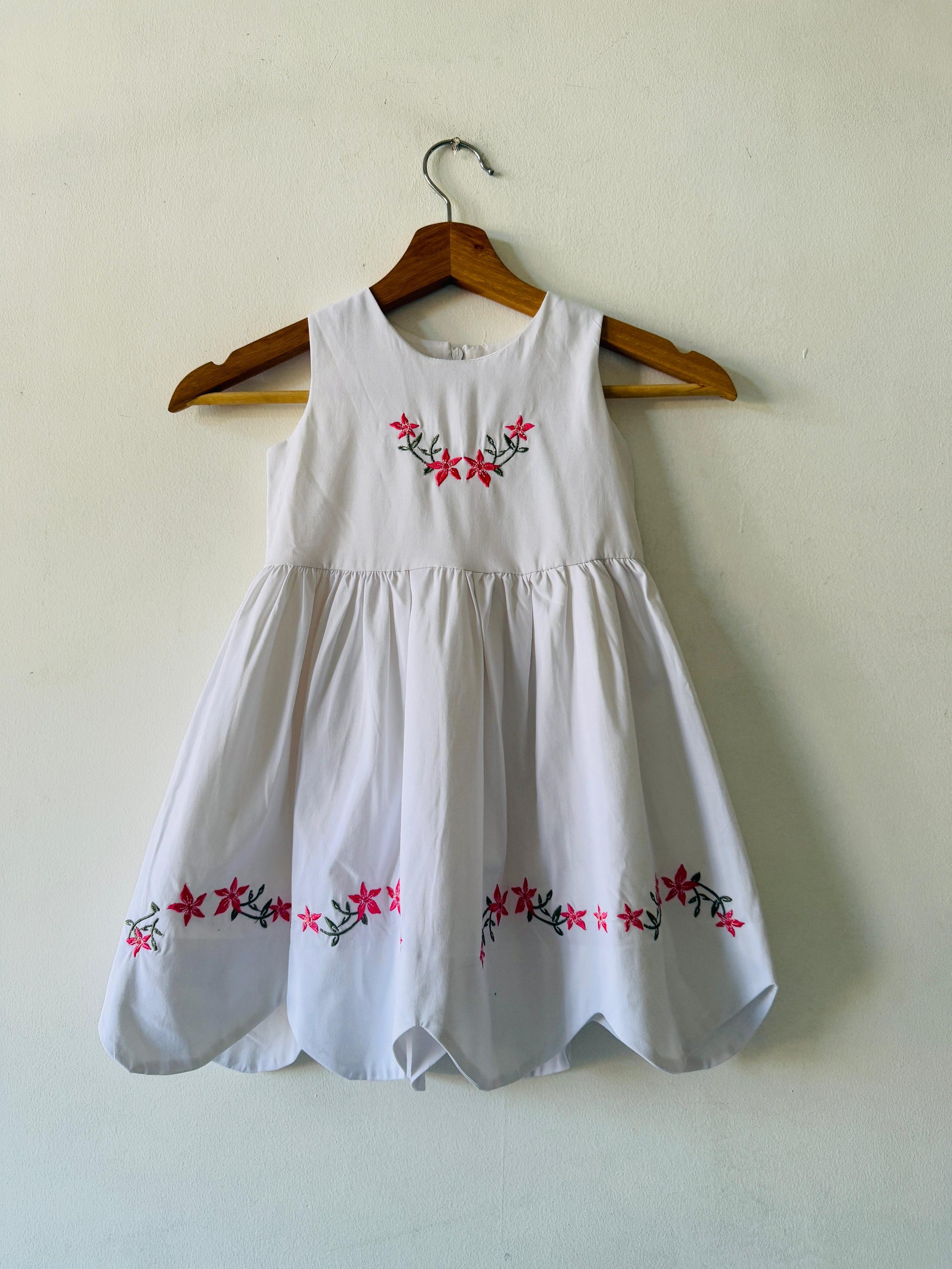 Floral Daisy DressComfortable and elegant dress with a hint of adorable floral embroidery touch to glam up lil’ baby girl’s wardrobe.